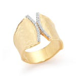 - 14 Karat Yellow Gold Matte And Hammer-Finished Scallop-Edge Ring