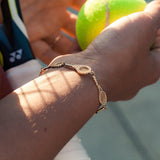The Legacy Collection shines with graphic sophistication and bold simplicity. The Paume Racquet’s flowing and fluid curves feature a strong studded design and teams up with additional racquets to wrap around your wrist as a bracelet. Its bold, yet delicate design makes it the perfect accessory for any setting. Layer it with your other bracelets for a fun look.