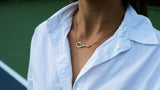 The play of crisp lines and perfectly proportioned curves dances around the Paume Racquet frame to create the beautiful fluidity of the Classic Necklace. Layer it with other chain styles for a trendy look or wear it alone as an everyday piece on the court and off.
