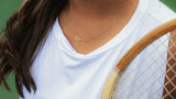 The play of crisp lines and perfectly proportioned curves dances around the delicate Paume Racquet frame to create the beautiful fluidity of the Petit Necklace. Layer it with other chain styles for a trendy look or wear it alone as an everyday piece on the court and off.
